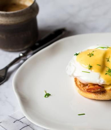 Eggs Benedict mit selbstgemachter Sauce Hollandaise