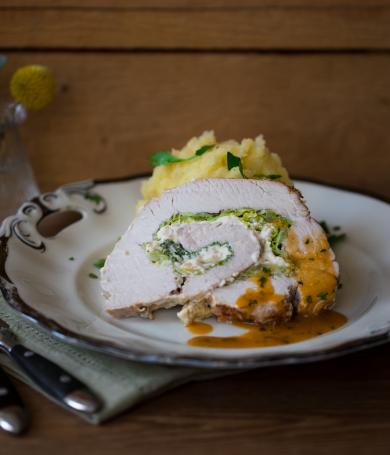 Putenrollbraten gefüllt mit Wirsing und Frischkäse