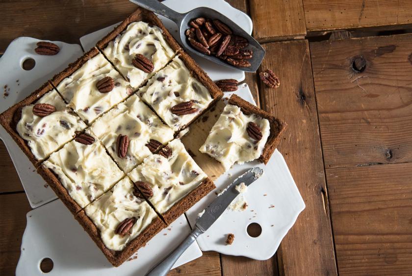 Zuckerrübensirup, Zimt, Kardamom und Ingwer treffen auf ein dekadentes Frosting aus Mascarpone und Pekannüssen. Das kann nur köstlich werden!