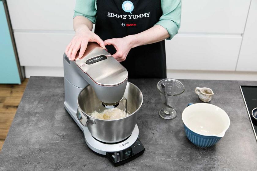 - Den Teig intensiv kneten, am besten 15-20 Minuten. Anfangs mit der Küchenmaschine, später noch einmal ein paar Minuten per Hand. Dadurch können sich die Zutaten optimal verbinden. Außerdem kurbelt es die Aktivität der Hefe an und das führt zu einem luftigen, aromatischen Ergebnis.