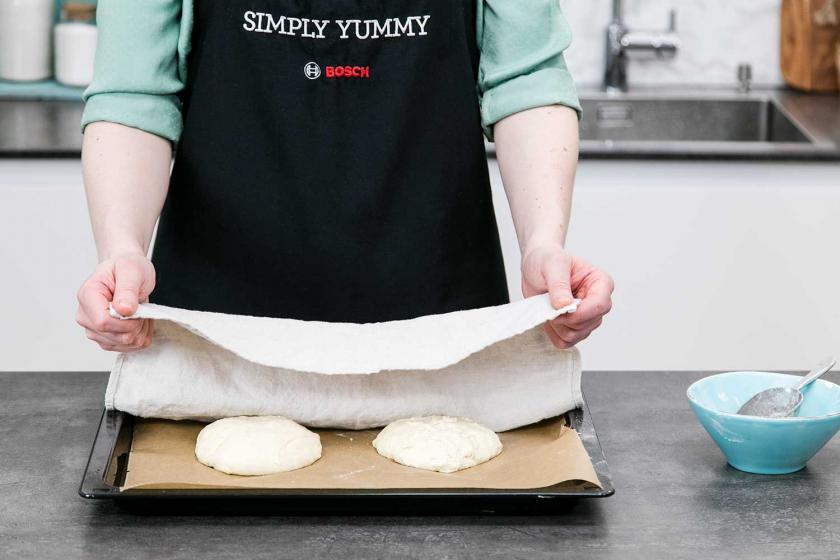 - Den Teig zweimal bei Zimmertemperatur gehen lassen – das erste Mal nach dem Kneten, das zweite Mal nach dem Portionieren. Insgesamt sollte er mindestens 8 Stunden ruhen können, noch besser sind sogar 24 Stunden. Das sorgt dafür, dass der Teig so richtig luftig-locker gelingt.