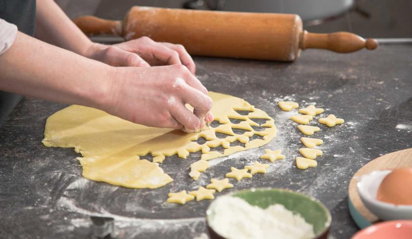 - Eiskalte Zutaten verwenden. Dafür die Butter vorab in Würfel schneiden und zusammen mit dem Wasser ca. 10 Minuten in den Froster geben.