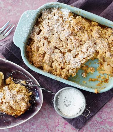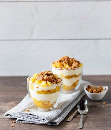 Apfel-Crumble im Glas mit Cheesecake-Creme