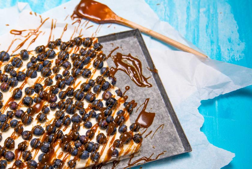 Diese Tarte ist der pure Wahnsinn. Schon die Blaubeer-Mascarponemischung ist der Hammer – aber wenn dann die Karamellsoße über die Tarte gegossen wird, gibt’s kein Halten mehr!