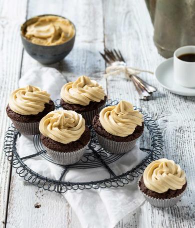 Klassische Eiskaffee-Sahne-Torte mit gerösteten Kuchenbröseln