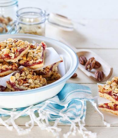 Das Rezept für den Himbeer-Schmand-Kuchen mit Spekulatiusboden