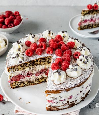Diese Himbeertorte mit weißer Schokolade ist ein wahrer Kuchentraum. Fluffiger Biskuitboden trifft auf eine Creme aus Frischkäse und Sahne – und natürlich geschmolzener weißer Schokolade. Für den fruchtigen Extratwist kommt süße Himbeermarmelade zwischen die Schichten. Einfach himmlisch! Mit unserem Rezept gelingt dir die Himbeertorte mit weißer Schokolade garantiert.