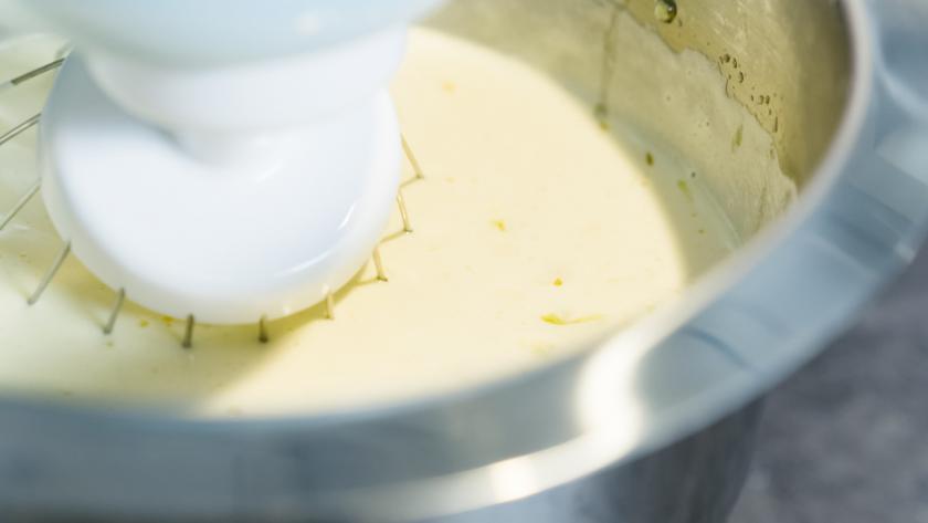 - Eier mit Zucker und Vanillezucker richtig schaumig schlagen. Als Faustregel gilt: Pro Ei 1 Minute rühren. Hier braucht es ein bisschen Geduld, aber es lohnt sich.