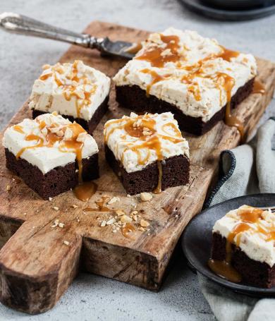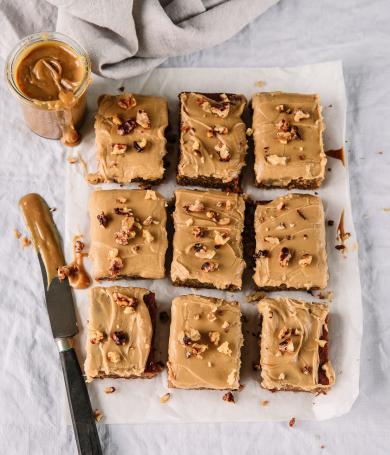 Das Karamell wird übrigens nach typisch britischem Rezept mit Kondensmilch hergestellt. Ganz schön süß. Ja. Dafür packe ich aber ein bisschen weniger Zucker in den Boden und in die Glasur. Und in das Karamell sowieso. Da kommen nur noch Muscovadozucker und Zuckerrübensirup rein. Meine beiden Geheimzutaten, wenn es um noch mehr Karamellgeschmack geht. Kennst du vielleicht schon von meinen Cinnamon Rolls. Aber um die geht es ja jetzt garnicht. Sondern um diese süchtigmachende Trilogie.