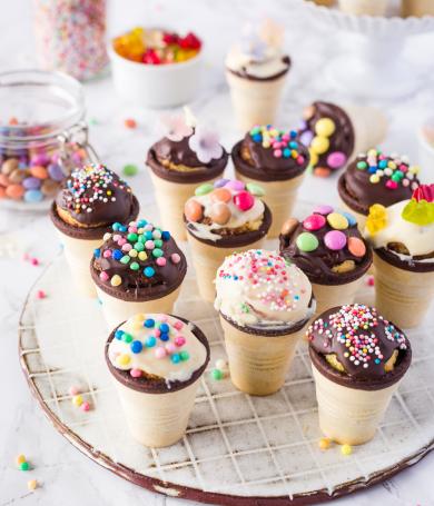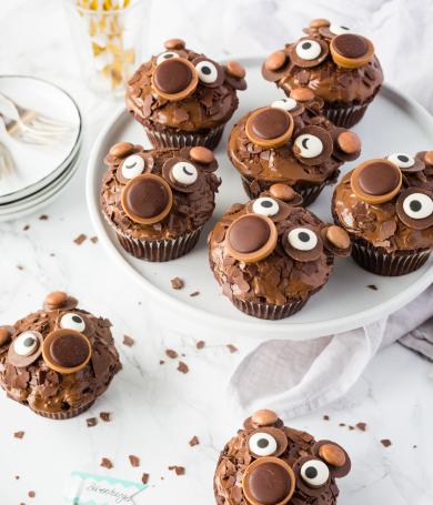 Sobald die Küchlein ausgekühlt sind, mache ich mich an die Verzierung. Ich mag die Mini-Amerikaner am liebsten mit Zuckerguss und Smarties. So wie früher auf meinem Kindergeburtstag. Wer es noch etwas bunter mag, der kann auch den Zuckerguss mit Lebensmittelfarbe oder Fruchtsaft einfärben. Eine Schokoladenglasur geht natürlich auch. Sowohl aus dunkler als auch aus weißer oder Vollmilchkuvertüre. Das ist ganz egal. So wie allerhand Süßigkeiten zum Dekorieren. An was ich da denke?