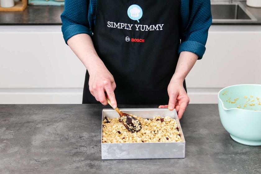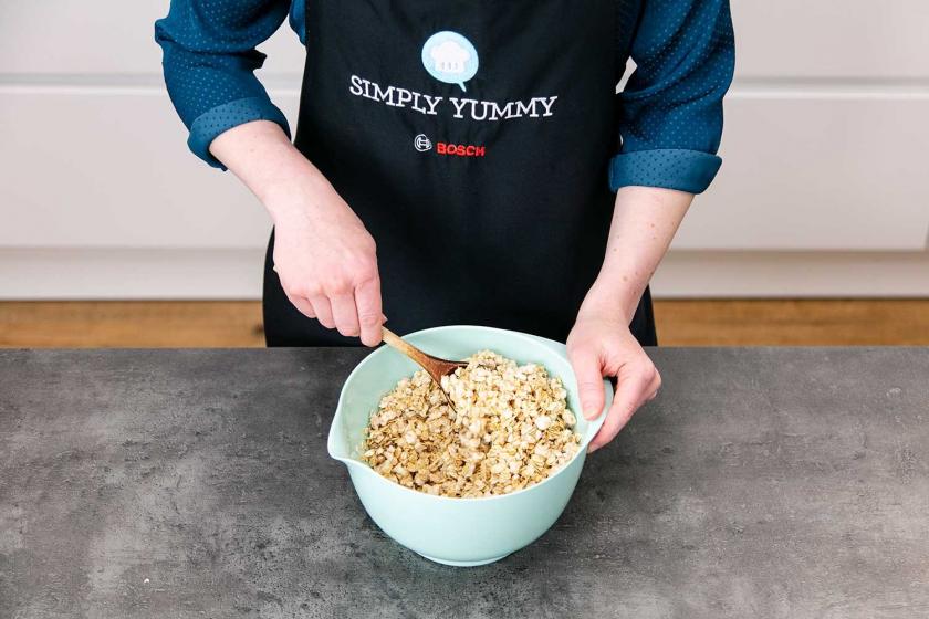 Das Öl ist nicht nur für den Geschmack, sondern auch für die Knusprigkeit verantwortlich. Natürlich nur, wenn du deine Müsliriegel im Ofen backst. Es gibt ja auch solche, die nicht gebacken werden. Dabei ist es ganz wichtig, dass du es mit dem Fett – egal ob Öl oder Butter – nicht übertreibst. Ich spreche aus Erfahrung. Denn sonst wird’s matschig.
