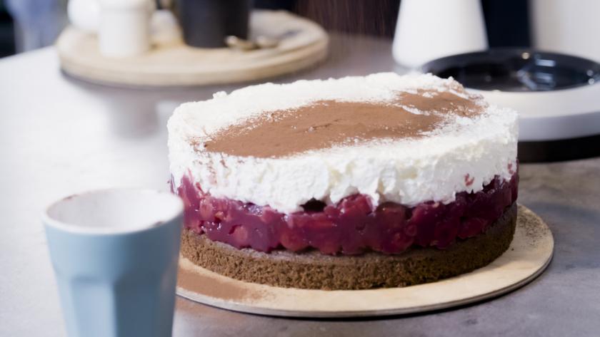 Nusskuchen mit Sauerkirschen und Sahne-Quark-Creme