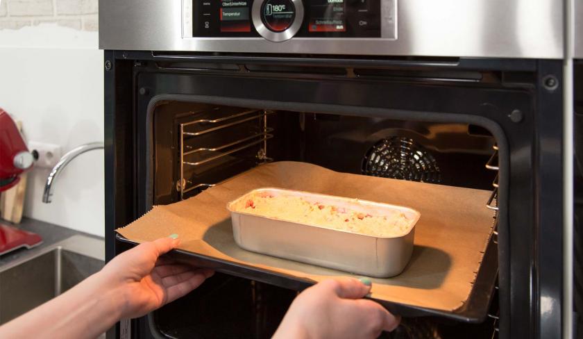 Backe das Ganze jetzt ca. 1 Stunde in der Ofenmitte. Wenn der Kuchen droht, zu dunkel zu werden, decke ihn mit Alufolie ab. Kontrolliere nach der Backzeit, ob der Kuchen gar ist. Dazu stich ein Holzspießchen in die Mitte des Teiges. Wenn beim Rausziehen kein Teig mehr an dem Spieß klebt, ist der Kuchen durchgebacken und fertig.