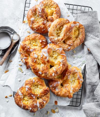 Ich finde, es gibt nichts Besseres als diese Puddingtaler mit Streusel. Die Basis: ein richtig fluffiger Hefeteig, wie er sein soll. Die Füllung: eine Art Apfel-Vanillepudding, die mit dicken Zimtstreuseln getoppt wird. Wer mag, der kann die Puddingfüllung auch noch mit kleinen Apfelstückchen verfeinern.