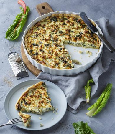 Backofen auf 180 °C Ober-/Unterhitze vorheizen. Eine Tarteform mit Hebeboden mit Backtrennspray einfetten.