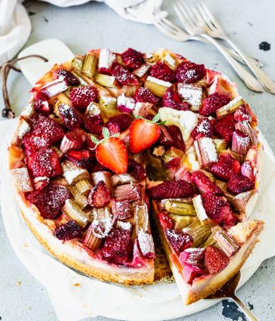 Das Rezept für deinen Erdbeer-Rhabarber-Joghurtkuchen