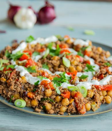 Schnelle Hackfleischpfanne mit Kichererbsen