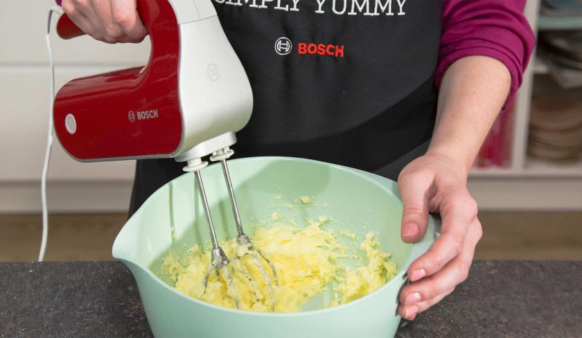 Heize deinen Backofen auf 190 Grad Ober-/Unterhitze vor. Lege 2 Springformen (18 cm Durchmesser) am Boden mit Backpapier aus.