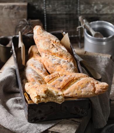 Das Rezept für dein Vollkornbaguette mit Oliven und Tomaten
