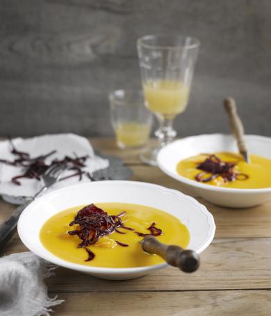 Kürbissuppe mit Kokosmilch und Kartoffeln wieder auftauen