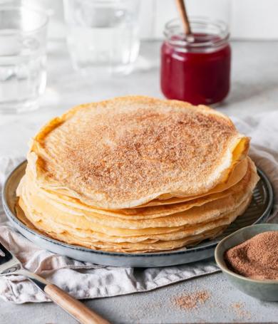 - Vegane Pfannkuchen: frei von tierischen Zutaten, dafür mit Mineralwasser und Mandelmilch.
