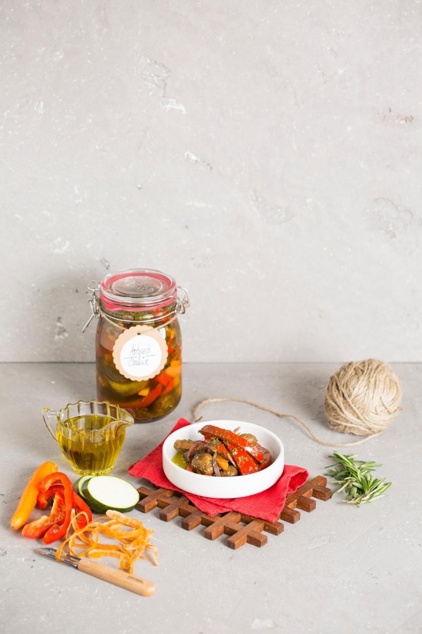 Das Gemüse in sterile Gläser (2 Gläser à 1000 ml) schichten und die Marinade angießen. Evtl. noch etwas Olivenöl angießen, sodass das Gemüse bedeckt ist. Gläser verschließen.