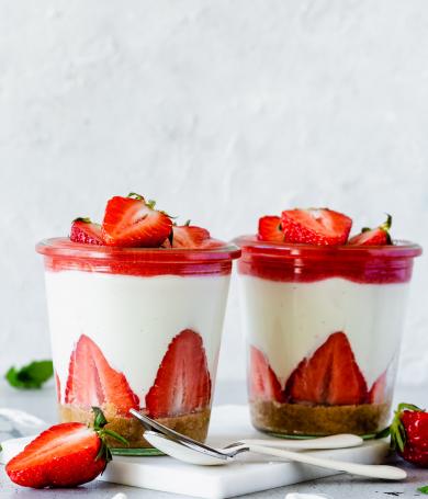 Eine Joghurtbombe ist das wohl erfrischendste und schönste Dessert, das du selber machen kannst. Aus nur 5 Zutaten stellst du die cremige Masse mit Naturjoghurt her, die dann mit einem Trick zu deiner Joghurtbombe wird. Was dazu am besten passt? Eine köstliche Sauce aus Erdbeeren und ein fruchtiges Topping. Davon werden alle begeistert sein! Und das Beste: Die Joghurtbombe lässt sich ideal am Vortag vorbereiten und kühlt ab, während du dich auf deine Liebsten freust.