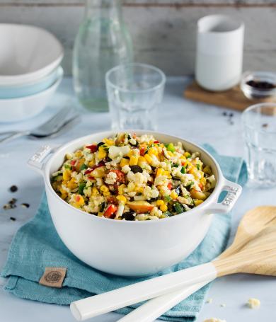 Meine Blumenkohl Nuggets kommen regelmäßig auf den Tisch. Mal als Snack, mal mit Salat als Mittagessen. Die kleinen Nuggets sind nämlich nicht nur unheimlich lecker, sondern auch total einfach gemacht. Die Basis besteht aus Blumenkohl, den ich vorab dämpfe. Wichtig hier: Das Gemüse nach dem Garen kräftig ausdrücken, damit möglichst die gesamte Flüssigkeit entfernt wird. Dann hält die Nugget-Masse besser zusammen. Dazu kommen noch Eier, Gewürze, Parmesan und etwas Panko. Letzteres ist ein gröberes Paniermehl. Alternativ kannst du auch klassische Semmelbrösel nehmen.