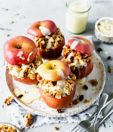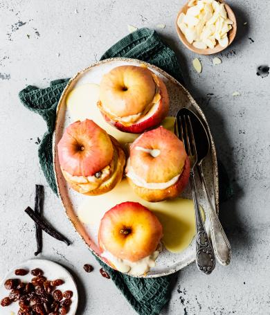 Ich glaube, jetzt habe ich die beste Variante gefunden: Bratapfel mit Schokolade, Zimt und Mandeln. Für mich ist das die leckerste Kombination, die ich mir wünschen kann. Besonders, weil ich zur dunklen Zartbitterschokolade greife. Die mag ich am liebsten und passt richtig gut zur Karamellsoße, die ich noch zum Bratapfel kredenze. Damit hat sich jene Variante einen Platz in unserer Rezeptsammlung für die besten Bratäpfel verdient.