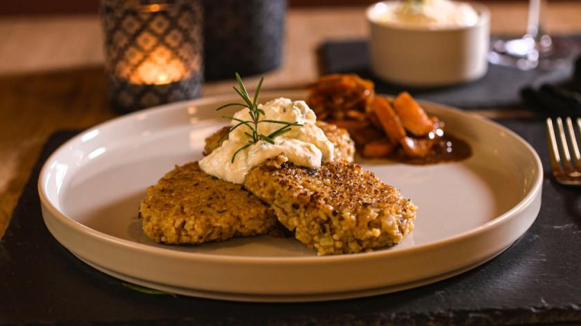 Die Basis meiner Bulgur Köfte: Bulgur. Klar. Dazu etwas Gouda, ein bisschen Petersilie, eine Zwiebel, Ei sowie Mehl für die Bindung und ein paar Gewürze. Nicht mehr. Kommt dem Klassiker also ganz schön nahe. Mit der Ausnahme, dass diese Frikadellen eine extra Portion Käse enthalten. Allein das spricht doch schon für die fleischlose Alternative, oder? Nein, die Kombination kommt nicht von mir. Sondern vom Reiser Kochteam. Genauso wie die Kombination mit karamellisierten Möhrchen und einem cremigen Feta-Dip.