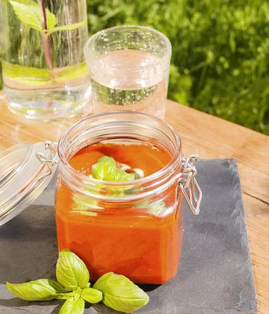 Kalte Gemüsesuppe aus Tomaten, Paprika und Gurken