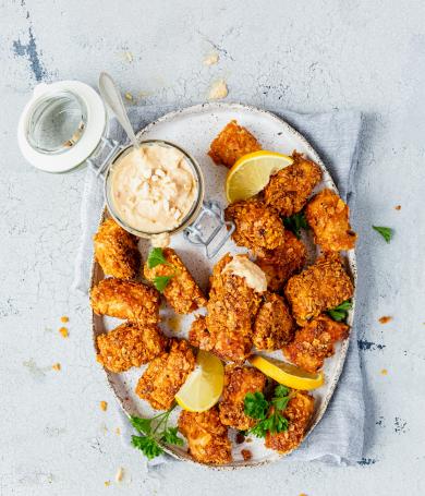 Chicken-Nuggets mit Kokospanade und süß-saurem Dip
