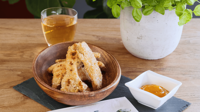 Endlich Feierabend, den Lieblingsfilm anschmeissen und die Füße hochlegen. Da fehlt nur noch ein leckerer Snack, der unkompliziert gemacht ist, aber richtig gut schmeckt. Genau für solche Momente hat das Reiser-Kochteam das neue Rezept entwickelt: Knusprige Chicken-Nuggets mit Kokospanade und scharfem Mango-Dip. Um zu viel Fett müssen wir uns bei dieser selbstgemachten Variante der Nuggets auch keine Sorgen machen, denn sie werden auch ohne Frittieren im Backofen schön knusprig. Das hat übrigens auch Susanne in ihrem Guide für die kusprigsten Chicken Nuggets getestet. Hüpf mal rüber für mehr Tipps, wie die Hähnchenstücke besonders saftig-knusprig gelingen.