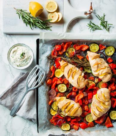 Aber mal ehrlich: Butter plus Sahne plus Brühe ergibt einfach ein Fest. Ein Soßenfest, in das ich mich regelrecht reinlegen könnte. Gepaart mit Zwiebeln, Knoblauch und zwei Sorten Kräuter – ok, Ciao. Könnte ich buchstäblich so weglöffeln. Irgendwie auch gemein, meine Schwäche so auszunutzen. Nur ein bisschen natürlich. Insgeheim freue ich mich ja auch über den Vorschlag des Mannes, mal wieder Zwiebel-Sahne-Hähnchen wie von Oma zu kochen. Dann aber mit dem Kompromiss, dass es Ofengemüse oder einen frischen Salat als Beilage gibt. Dann hab ich mein Gemüse dabei und es bleibt auch noch Low Carb. Damit kann ich sehr gut leben. Sehr, sehr gut. Ebenso mit der Tatsache, dass dieses Ofenglück ganz einfach und schnell zubereitet ist. Also genau mein Ding.