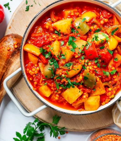 Wer mag, kann stattdessen die Suppe um Kartoffeln ergänzen. In diesem Fall eignen sich festkochende bzw. vorwiegend festkochenden Sorten. Dafür 300 g Kartoffeln schälen, würfeln und in der Suppe mitköcheln lassen.