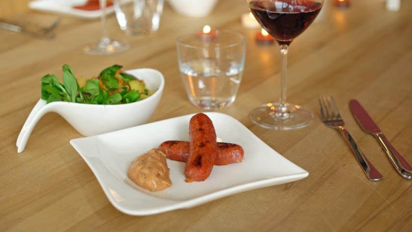 Die klassischen Weihnachtsessen variieren von Familie von zu Familie. Während bei vielen Feiern mehrgängige Menüs aufgefahren werden, deren Vorbereitung meist mehrere Tage beanspruchen, kommt bei einigen Familien auch gerne der simpelste Klassiker schlechthin auf den Tisch: Kartoffelsalat mit Würstchen. Die beliebteste Variante ist wahrscheinlich der warme Kartoffelsalat mit Brühe. Dass dieses Gericht aber auch etwas anders interpretiert werden kann, beweist das Reiser-Kochteam., denn der Weihnachtsklassiker wird mit Süßkartoffeln und würziger Chorizowurst aufgepeppt.