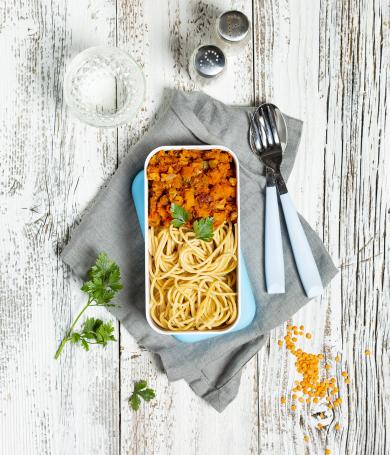 Noch ein Tipp zum Schluss: Salat und Dressing unbedingt getrennt voneinander aufbewahren. Nur so bleiben Babyspinat und Rotkohl lange knackig.