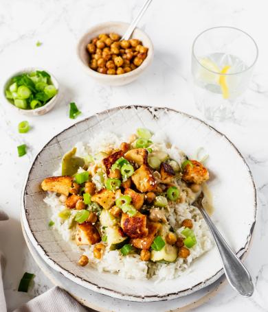 Kürbis-Curry mit Kokosmilch, Reis und gerösteten Kichererbsen ist das Beste, was der Herbst zu bieten hat. Ganz einfach gemacht und frei von tierischen Zutaten. Wie einfach sich das deftige Kürbis-Curry vegan zubereiten lässt, erfährst du hier im Rezept.