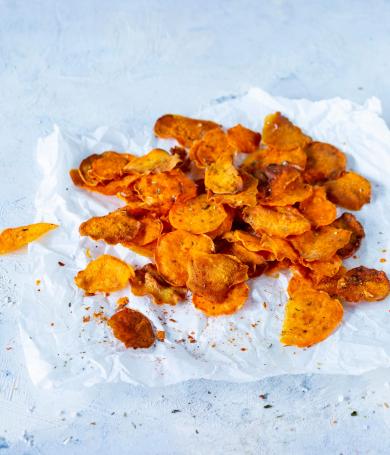 Kleiner Tipp: Zum nussigen Geschmack der Pastinaken-Chips passen kräftige Aromen wie Curry, Chili, Thymian oder Rosmarin.