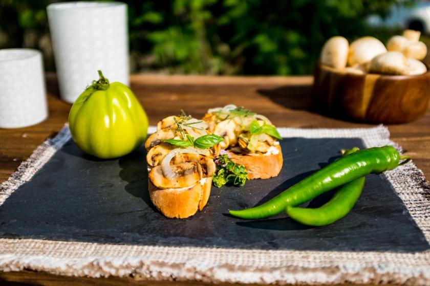 Bruschetta - liebe ich. Im Gegensatz zu meiner Freundin Lisa mag ich Bruschetta ganz klassisch. Sie bevorzugt - je nach Saison - Tomaten-Mozzarella-Bruschetta, Pfirsich-Ziegenkäse-Bruschetta oder eben Pilz-Bruschetta. Nachdem ich letztere Variante dann auch beim Reiser Kochteam entdeckt habe, war es um mich Geschehen. Ja, so eine Pilz-Bruschetta kann so einiges. Nicht zuletzt wegen der Kombination aus Frischkäse und Pilzen. Ansonsten ist sie dem italienischen Klassiker ja auch gar nicht so unähnlich. Geröstetes Brot - hier Baguette - darauf ein wenig Knoblauch und eben Frischkäse sowie Pilze. Dann noch ein Blättchen Basilikum und fertig ist die Neu-Interpretation unserer liebsten Vorspeise.
