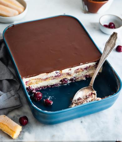 Mein Schoko Tiramisu ist einfach gemacht und kommt mit doppelt Schoko daher. Und zwar in Form von Schokopudding für die Creme sowie Backkakao als Feinschliff. Damit das Ganze so richtig lecker wird, mischt sich natürlich noch Mascarpone dazu. So wie du es von dem italienischen Dessert kennst.