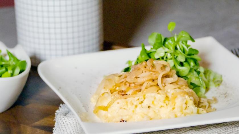 Ich liebe die Berge. Obwohl ich kein Ski fahre, bin ich so so gerne in den Bergen unterwegs. Man denke an all die Köstlichkeiten, die man auf so einer Hütte bekommt: Apfelstrudel, Kaiserschmarrn und - mein absoluter Favorit - Käsespätzle. Ok - für alle drei muss man nicht unbedingt in die Berge fahren. Vor allem klassische Käsespätzle in der Pfanne bekommt man ja auch um Stuttgart und München herum. Aber irgendwie habe ich das Gefühl, dass jene Speise in den Bergen einfach besser schmeckt. Nur kriege ich sie dadurch so selten. Und auch in Stuttgart oder München bin ich nicht ganz so oft. Also Käsespätzle selber machen? Ja, wäre eine Idee. Habe ich mich aber bisher noch nicht getraut. Sollte ich aber schleunigst ändern. Denn das Rezept für selbst gemachte Käsespätzle vom Reiser Kochteam lädt förmlich zum Nachmachen ein. Mein persönliches Highlight: Die Zwiebeln on top.