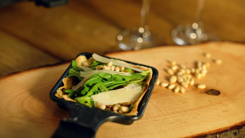 Gemüse und Fleisch mit Käse überbacken ist ja ein alter und beliebte Raclette-Variante, die bei vielen Familien zu Silvester auf den Tisch kommt. Doch habt Ihr schon einmal in Eurem Raclette einen Flammkuchen gebacken? Wenn nicht, dann probiert unbedingt mal das neues Rezept des Reiser-Kochteams aus! Lasst es Euch schmecken und genießt die Feiertage!