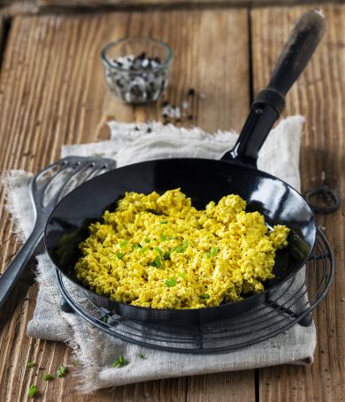 - Tofu mit einer Gabel zerbröseln und auf dem Blech verteilen. Im heißen Ofen 10-15 Minuten rösten.