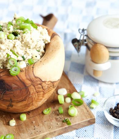 Du möchtest dein Tzatziki vegan zubereiten? Nichts leichter als das. Ob zu Möhrensticks oder Zucchinipuffer mit Haferflocken - veganes Tzatziki schmeckt immer super! Besonders mag ich die leicht stückige Konsistenz des Dips, ähnlich wie die von Hüttenkäse. Wie diese entsteht? Dank mildem Tofu. Diese Basis verrührst du mit einem Handmixer oder einer Küchenmaschine. So lässt sich der Tofu besser mit den anderen Zutaten mischen und später auf deinem Brot verteilen. Was jetzt noch fehlt? Gurke, Knoblauch und etwas Zitronensaft. Für den Feinschliff sorgen Weißweinessig, Olivenöl, Salz und Pfeffer. Wer mag, kann sein Tzatziki auch noch mit anderen Zutaten verfeinern. Zugegeben, das ist nicht ganz klassisch, aber unheimlich lecker! Ich rühre hin und wieder ein paar getrocknete Tomaten und Frühlingszwiebel unter - mhhh. Das schmeckt übrigens auch besonders gut auf knusprigem Knäckebrot.