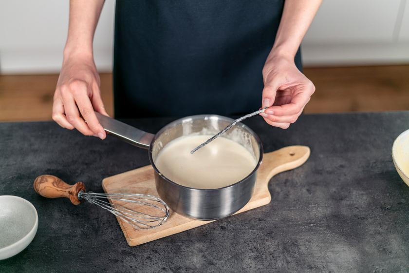 - Vanille für den Geschmack. Hier am besten zur Vanilleschote greifen, da ihr Aroma intensiver ist.