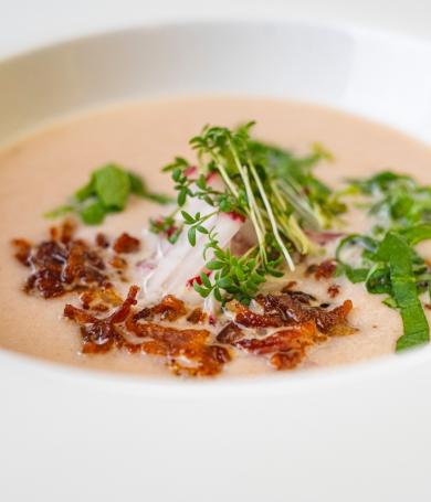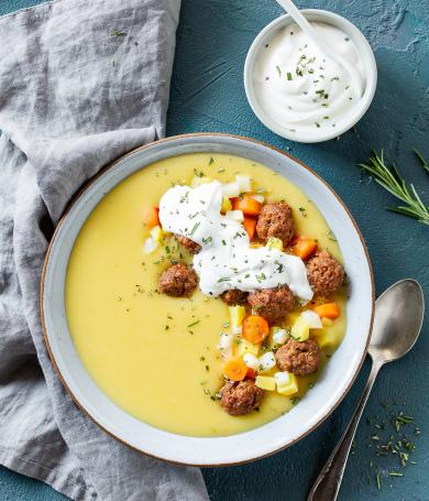 Kartoffelsuppe mit Hackbällchen und Schmand
