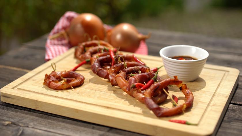 Lange war ich kein großer Fan von dieser typisch amerikanischen Beilage. Doch das Rezept hier vom Reiser-Kochteam hat mich eines besseren belehrt. Denn das Tolle daran: die Zwiebelringe sind nicht mit Fett vollgesogenen, sondern fein mit Chili mariniert und Schinken umwickelt. Deftig, knusprig und wahnsinnig lecker!