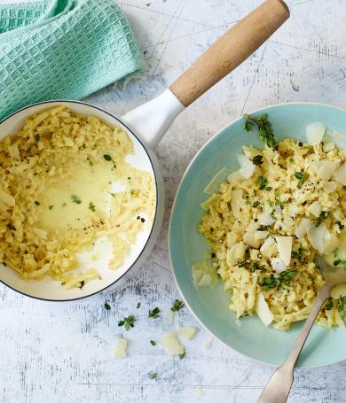 Für mich geht Risotto ja immer. Egal zu welcher Jahreszeit. Aber ich muss gestehen, im Winter, da schmeckt es gleich doppelt so gut. Dann, wenn es draußen schon richtig kalt ist. Und du in eine Wolldecke eingemummelt mit jenem dampfenden Gericht auf dem Sofa sitzt. Aber das Beste an dem Risotto ist diese eine Zutat – Wirsing. Den liebe ich ja auch in Omas Wirsingsuppe. Aber in diesem Reisgericht noch mehr. Hier wird er nämlich in ganz feinen Streifen untergemischt. Und mit Sahne, Parmesan und einem Nusscrunch verfeinert. Letzterer besteht aus gerösteten Haselnüssen. Schmeckt aber natürlich auch mit Pinienkernen oder Mandeln. Im Frühling tausche ich dann übrigens den Kohl gegen Spargel. Hüpf doch mal rüber zu meinem Rezept, falls dich das Spargelrisotto interessiert.