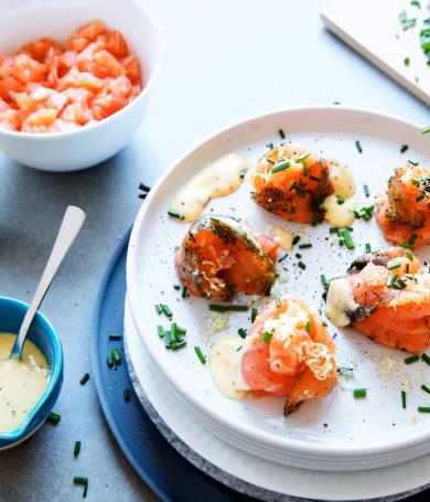 Das Besondere an dieser Füllung ist die Kombination aus herzhaft und süß. Cashewkerne bilden die Basis, ein paar Datteln, Rucola, Kräuter und Zitrone den Rest. Damit daraus eine cremige Füllung entsteht, musst du die Kerne mindestens 2 Stunden einweichen. Erst danach lassen sie sich zu einem feinen Mus verarbeiten. Ich gebe zu, die Füllung ist nichts für spontane Kocher, weil sie etwas Vorlaufzeit braucht. Aber das Ergebnis lohnt sich – versprochen! Der Rest geht dann auch wirklich ruckzuck. Alle, was du tun musst: Zutaten in einen leistungsstarken Mixer geben und pürieren. Nur noch mit Salz abschmecken und fertig.